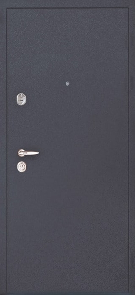 В полотно двери с порошковым напылением встроено два замка, которые усиливают защиту конструкции от взлома. Нижний – цилиндровый с тремя ригелями диаметром 11 мм, двумя оборотами закрывания, реверсивной защелкой. Верхний замок на выбор заказчика, предлагаем сувальдные механизмы брендов Mul-T-Lock, Mottura, Cisa.